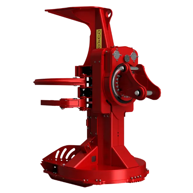 O cabeçote S Quadco 22C permite alcance máximo em árvores altas com uma torre estendida e maior capacidade de acumulação. A máquina apresenta braços fundidos mais fortes e duráveis, além de um disco de acionamento ultraconfiável com rolamentos ajustáveis.